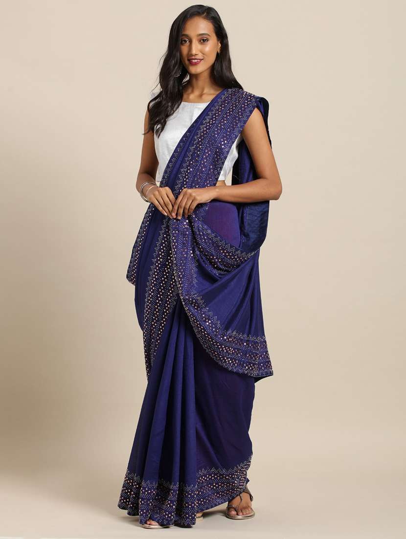 - » embellished solid saree with blouse