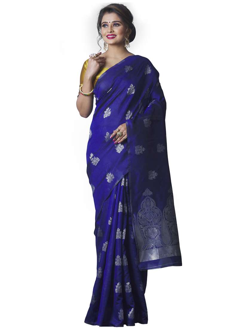 - » navy silk blend banarasi saree with blouse