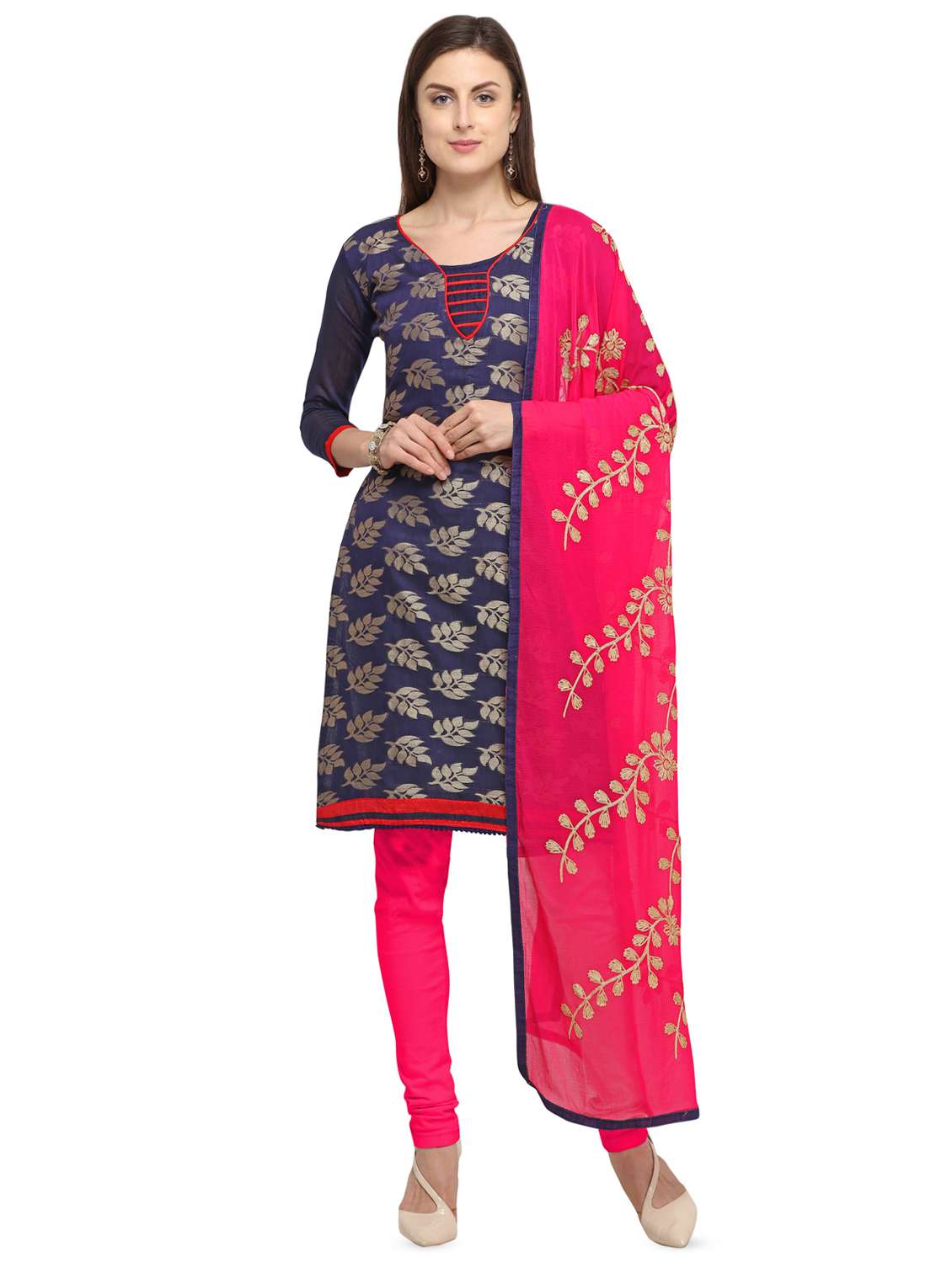 zari motifs unstitched churidaar suit