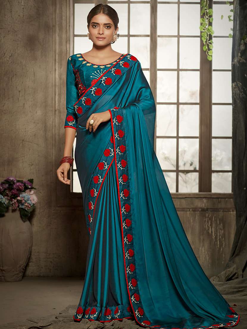 embroidered bordered mysore silk saree with blouse - 16208089 - Very Small Image - 1