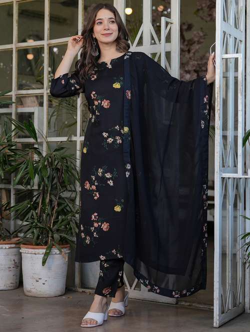 women three quarter sleeve kurta pant with dupatta set - 21987372 - Very Small Image - 1