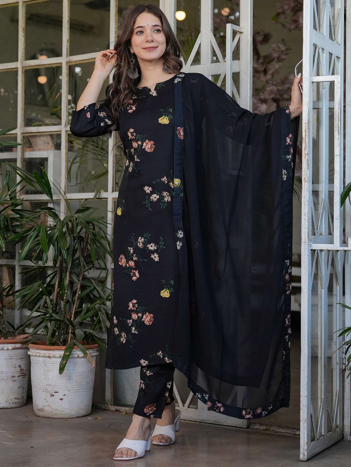 women three quarter sleeve kurta pant with dupatta set