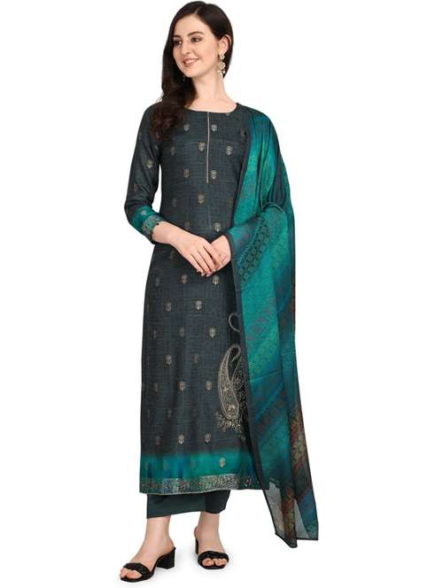 navy viscose unstitched suit - 18372589 - Very Small Image - 1