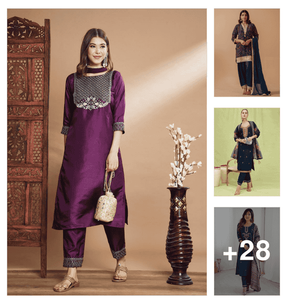 women three quarter sleeve anarkali kurta pant with dupatta set