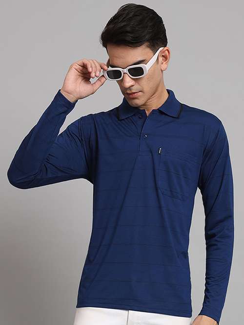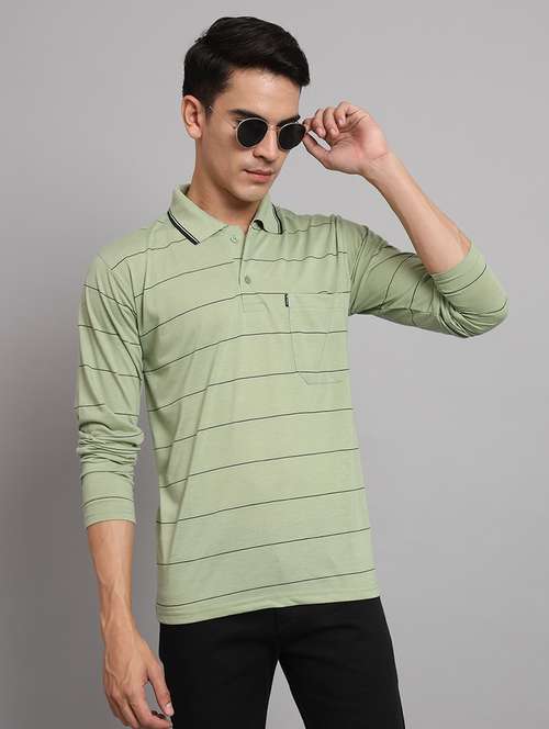 - » men striped neo mint cotton long sleeves polo t-shirt