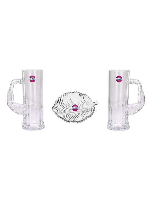 - » combo of 2 beer glass and 1 snack plate, transparent, glass, pack of 3 -a17