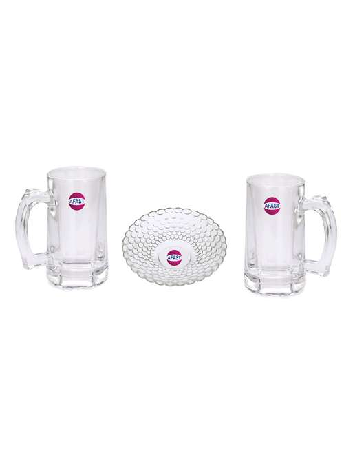 - » combo of 2 beer glass and 1 snack plate, transparent, glass, pack of 3 -a35