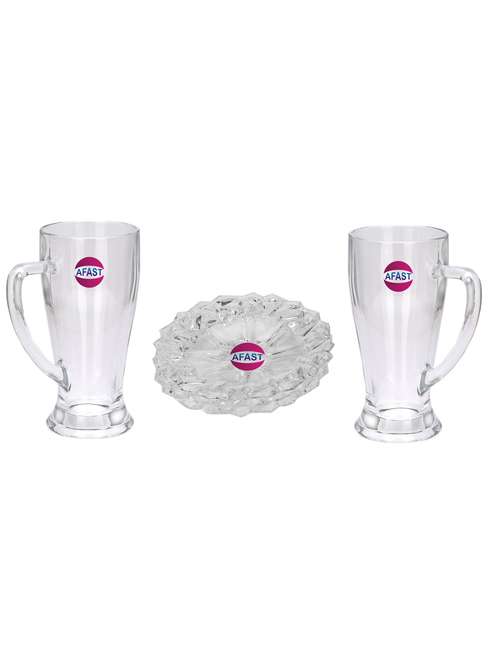 - » combo of 2 beer glass and 1 snack plate, transparent, glass, pack of 3 -a45