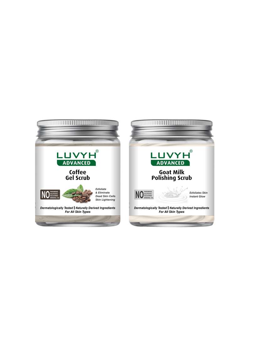 - » luvyh advanced coffee gel scrub-pack of 1x500gm and luvyh advanced goat milk polishing scrub-pack of 1x500gm