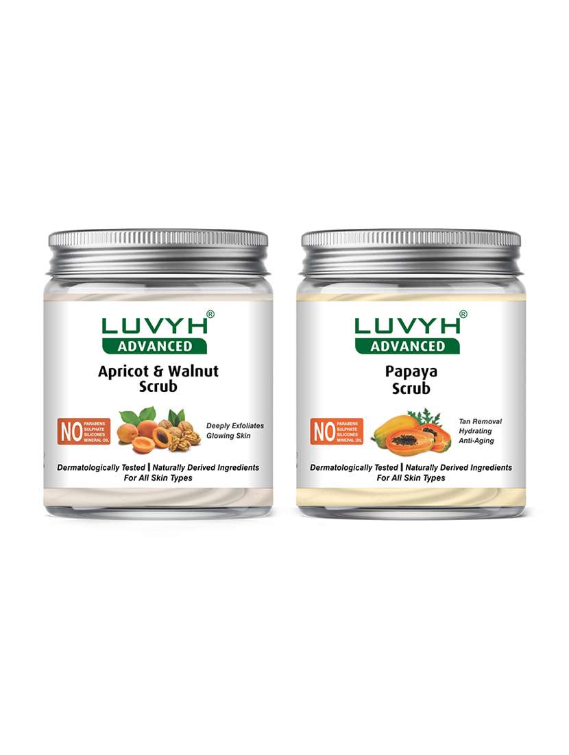luvyh advanced apricot & walnut scrub -pack of 1x500gm and luvyh advanced papaya scrub -pack of 1x500gm