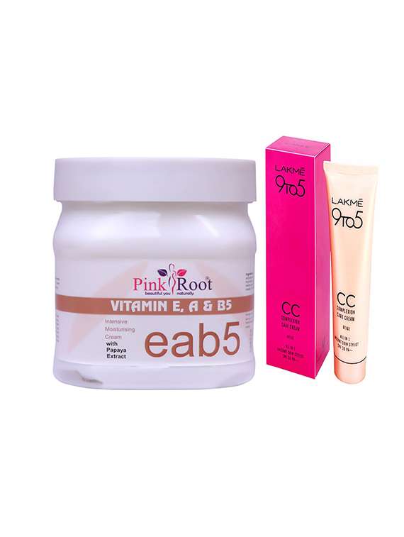 - » pink root vitamin e, a & b5 cream with lakme 9to5 cc cream