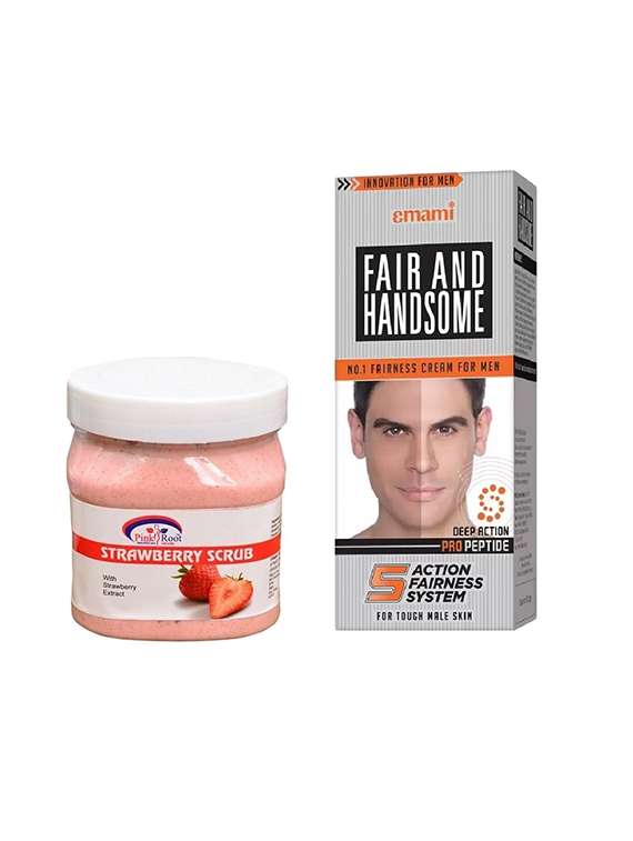 pink root strawberry scrub 500ml with emami fair & handsome 30g