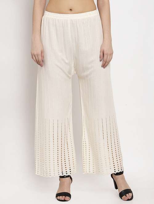 - » off-white mid rise schiffli work flared palazzo