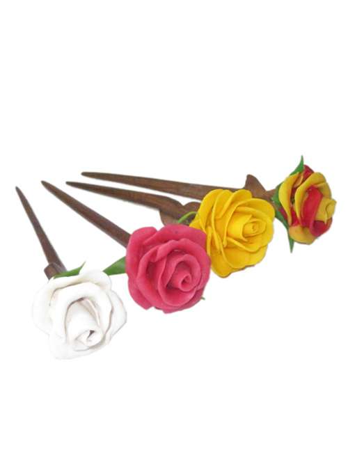 hand made wooden juda pin with procelain clay work - 12423204 - Very Small Image - 1