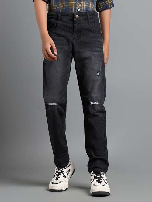 boys solid distressed slim fit jeans