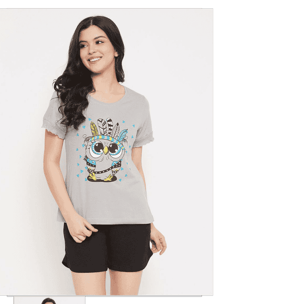 women round neck printed nighty
