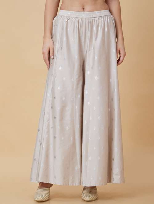- » globus women silver foil printed elasticated waist flared ethnic palazzos