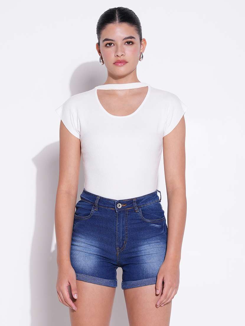 - » women solid chocker neck regular top