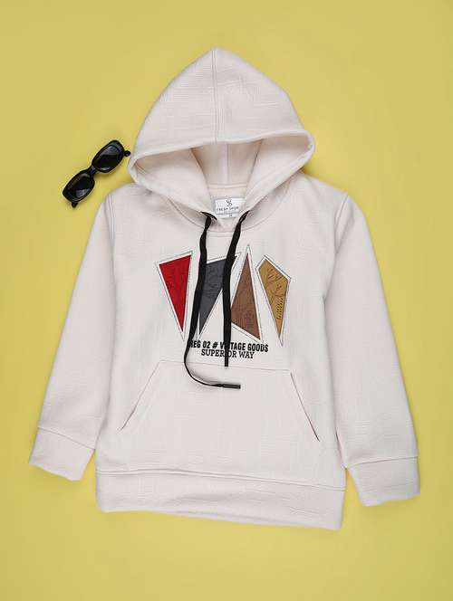 - Choose among the off white color range of comfortable style of sweatshirts suitable for a sea of occasions that young boys will love to wear.