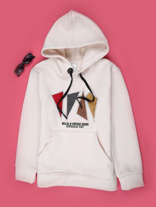 - Choose among the off white color range of comfortable style of sweatshirts suitable for a sea of occasions that young boys will love to wear.