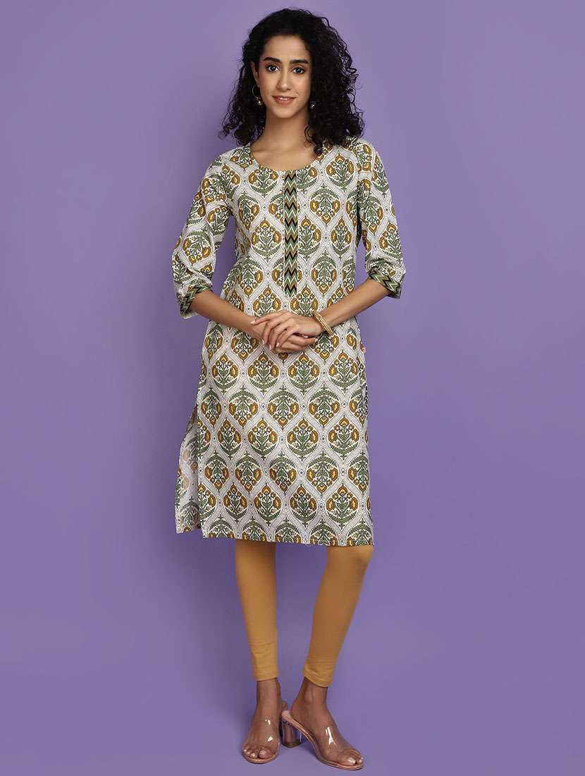 - Grab this beautiful kurta made up of cotton fabric featuring round neck designs.