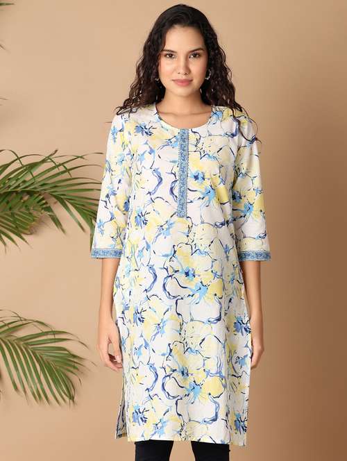 - » women three quarter sleeve printed straight kurta