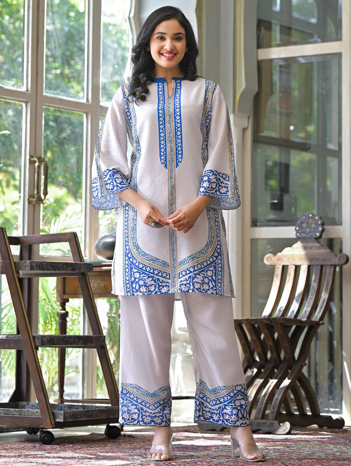 - » women printed three quarter sleeve ethnic co-ord set