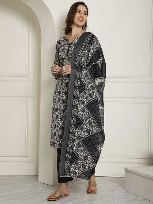 women three quarter sleeve kurta pant with dupatta set - 21743866 - Very Small Image - 1
