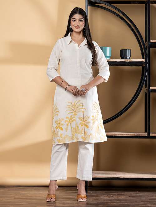 - Find gorgeous sets of ethnic wears in trending designs in off white colors suitable for festive wear of occasions.