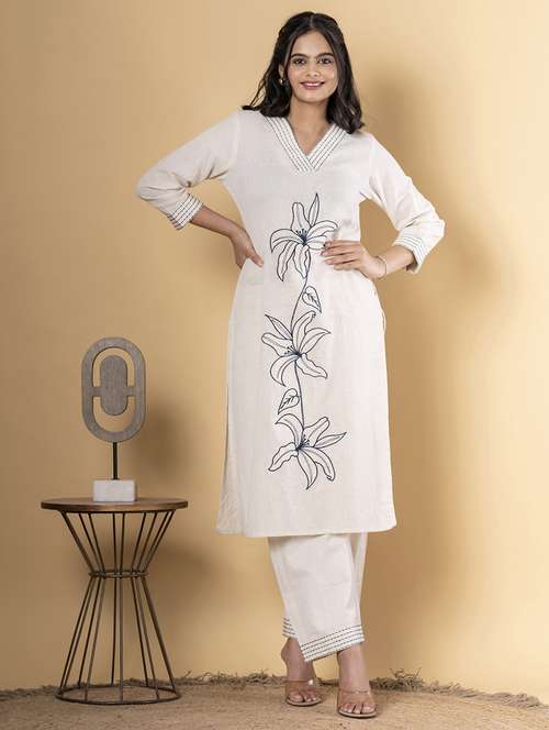 • Find gorgeous sets of ethnic wears in trending designs in off white colors suitable for festive wear of occasions.