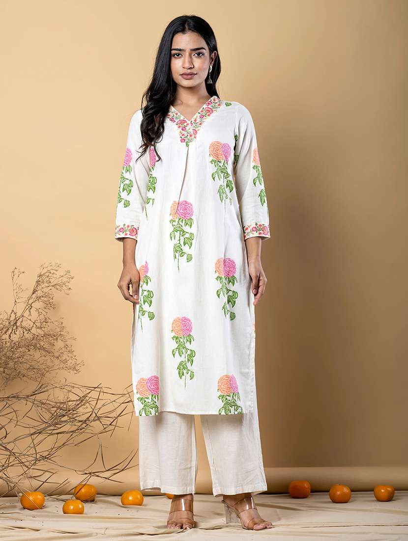 • Find gorgeous sets of ethnic wears in trending designs in white colors suitable for casual wear of occasions.