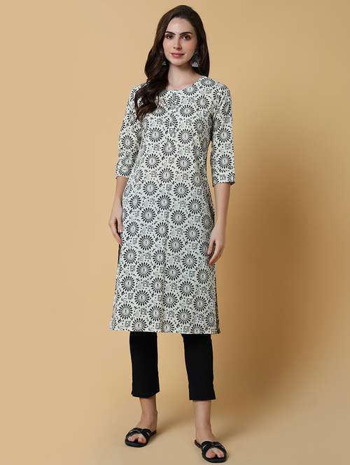 - » women printed three quater sleeve straight kurta