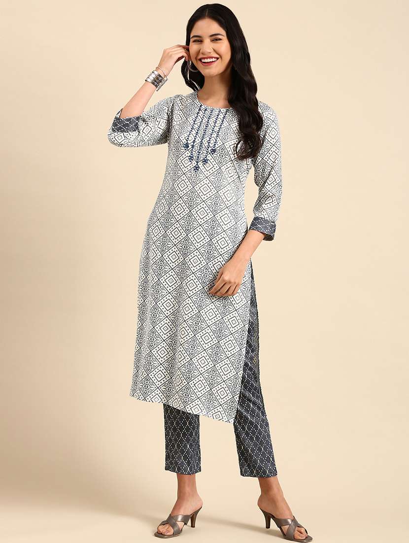 - » women printed round neck kurta pant set