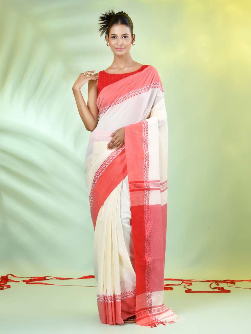 off white cotton handloom saree with blouse