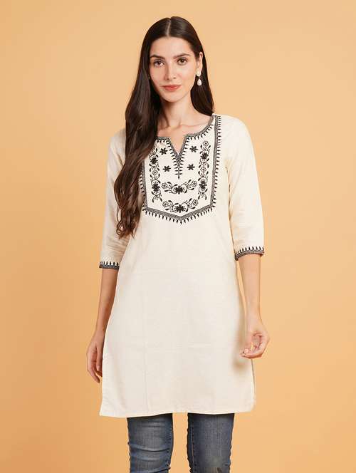 - » women embroidered three quarter sleeve straight kurti
