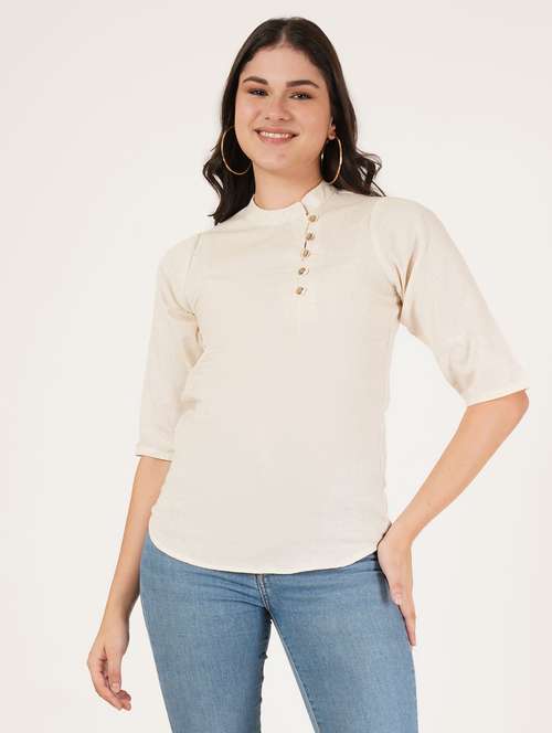 - Look trendy wearing this top from REHAYA and get this awesome collection in off white colour.
