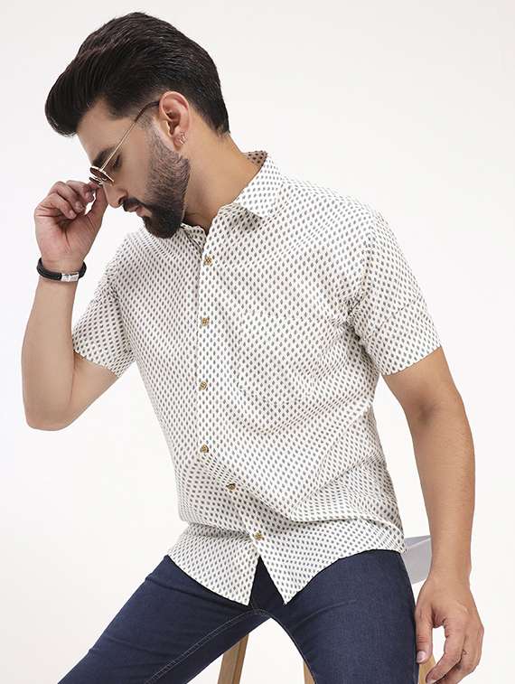 men printed short sleeve regular fit casual shirt