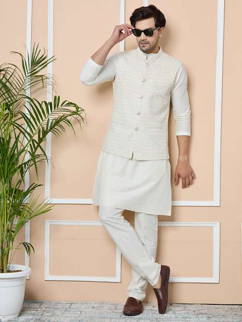 - Look stylish and confident in See Designs brands with off white Nehru jackets in which you will feel your best.
