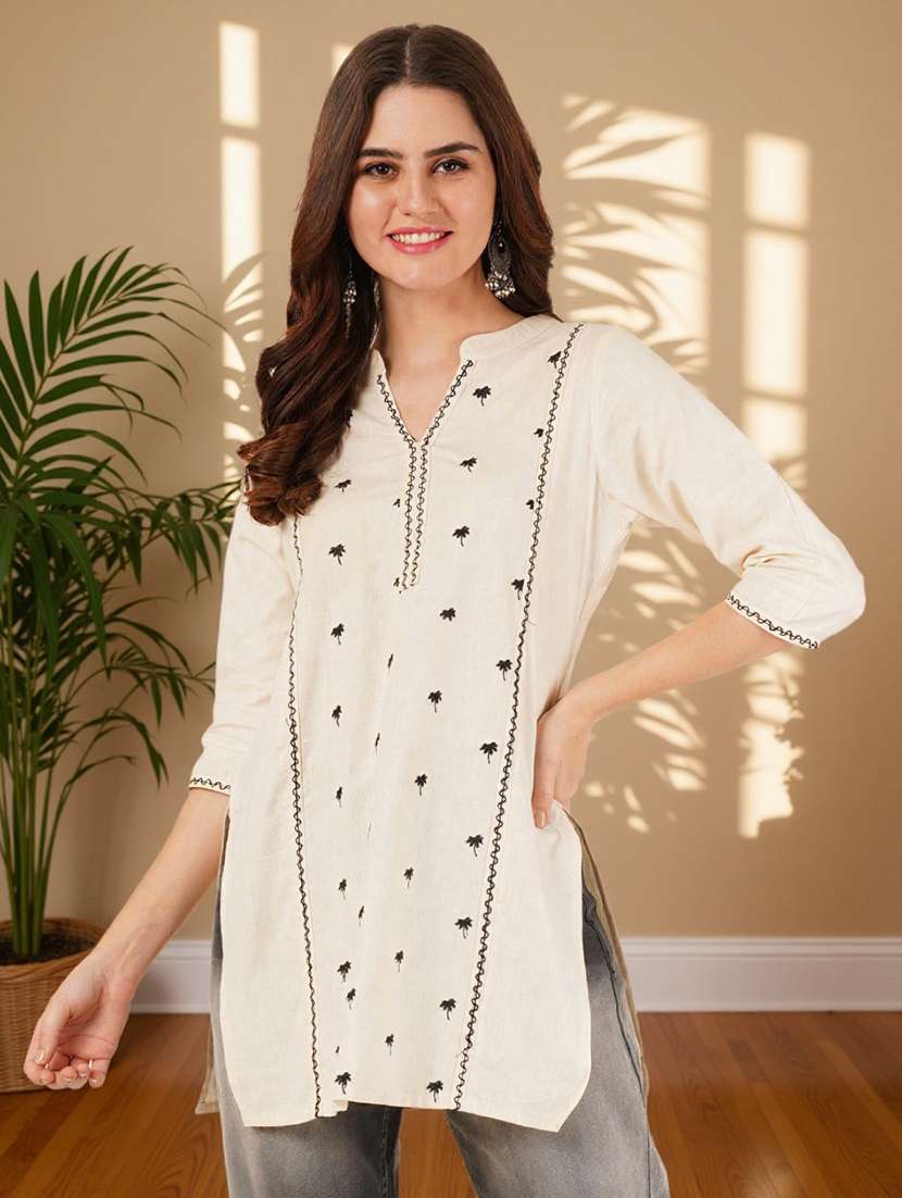 - » women embroidered three quarter sleeve straight kurti