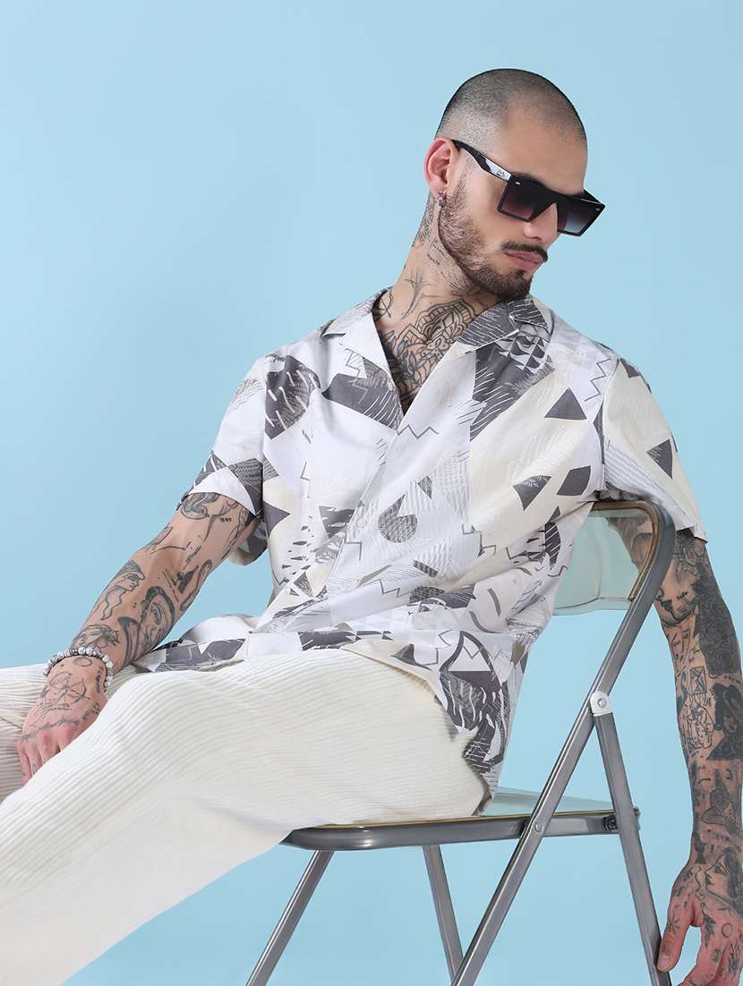 men printed short sleeve regular fit casual shirt
