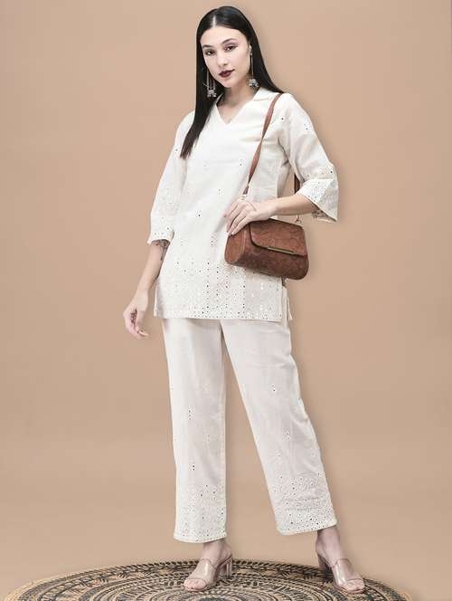 - » women solid with work three quarter sleeve ethnic co-ord set