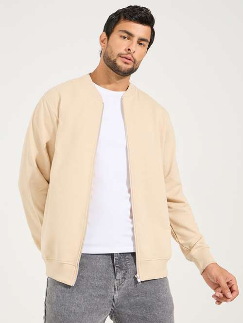 - » men cream solid casual jacket
