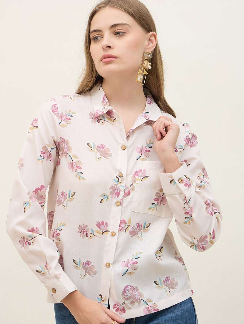 - » women printed collared long sleeve regular shirt