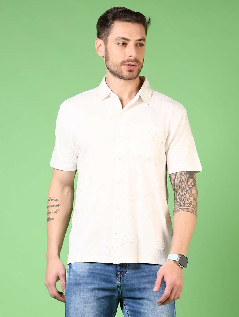 men self design short sleeve regular fit casual shirt