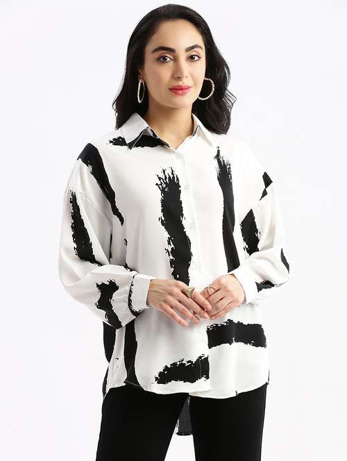 women spread collar abstract printed oversized shirt - 21387581 - Very Small Image - 1