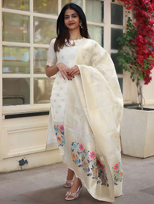 • Find gorgeous sets of ethnic wears in trending designs in off white colors suitable for festive wear of occasions.