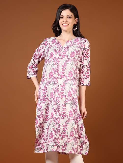 - Grab this beautiful kurta made up of cotton fabric featuring notch neck designs.