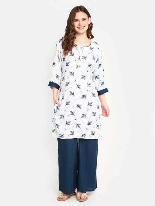 - » women white round neck kurta palazzo set