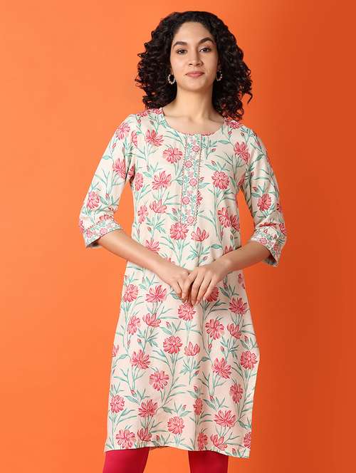 - » women floral three quarter sleeve straight kurta