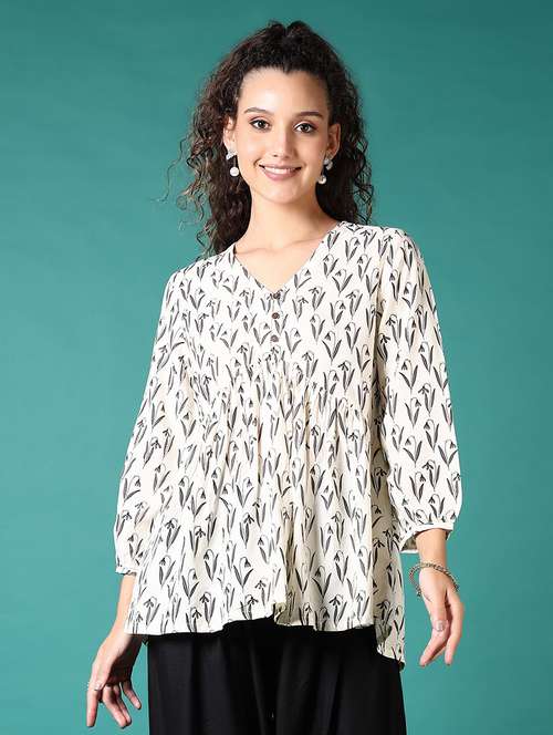 women off white printed v neck flared kurti - 21698909 -  Standard Image - 0 women off white printed v neck flared kurti - 21698909 -  Zoom Image - 0